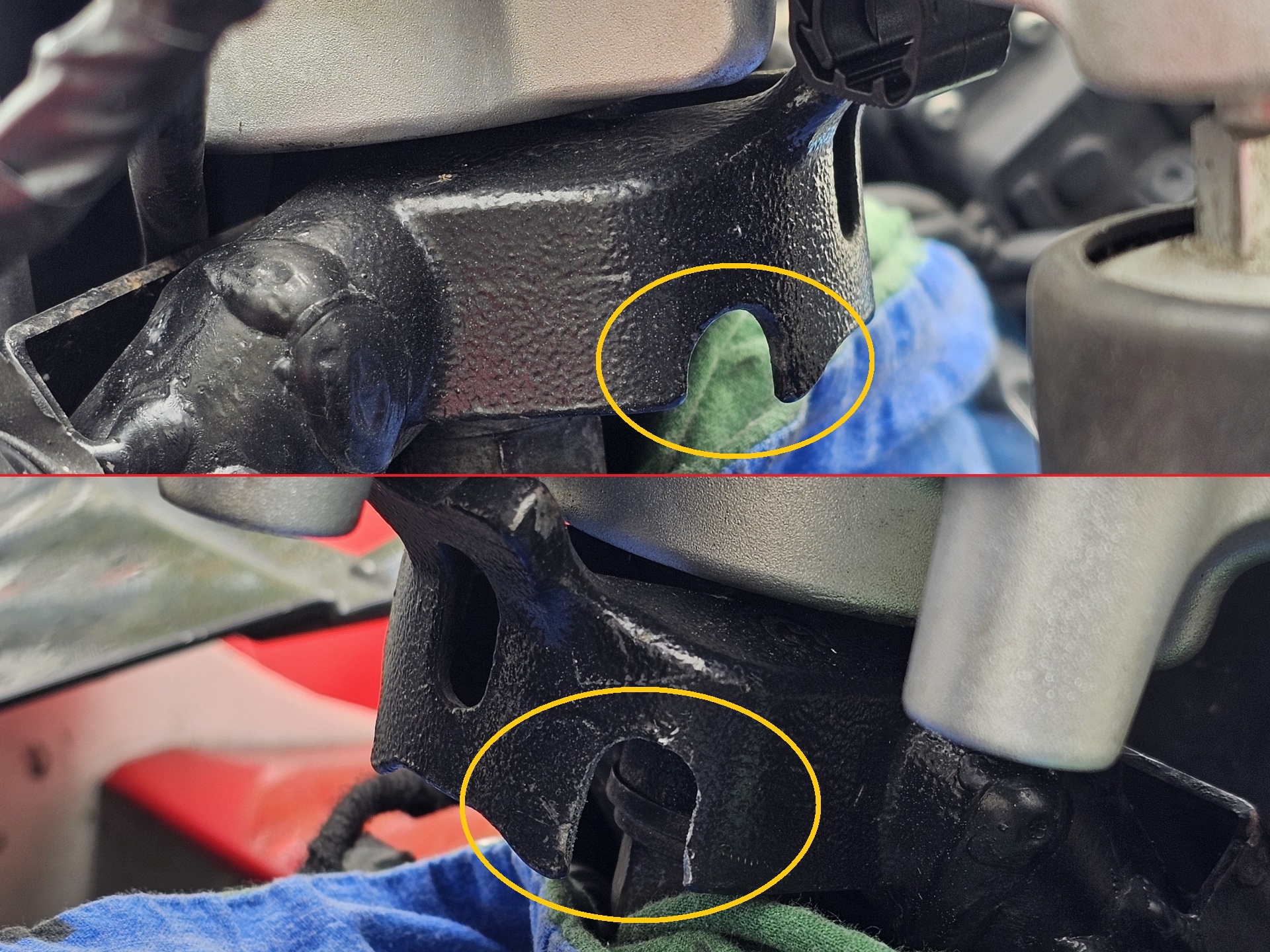 5) zvětšit (prodloužit) výřez pro západku zámku řízení