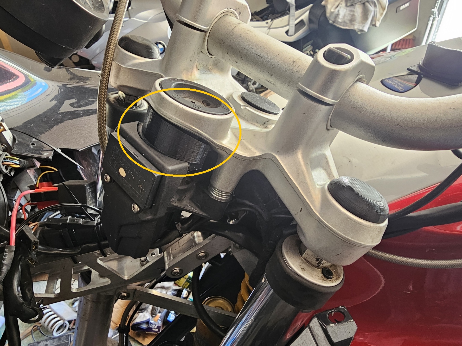 6) brýle z LC namontovat na motorku, mezi brýle a zámek řízení naskládat 5 ks podložek pro M8 šroub