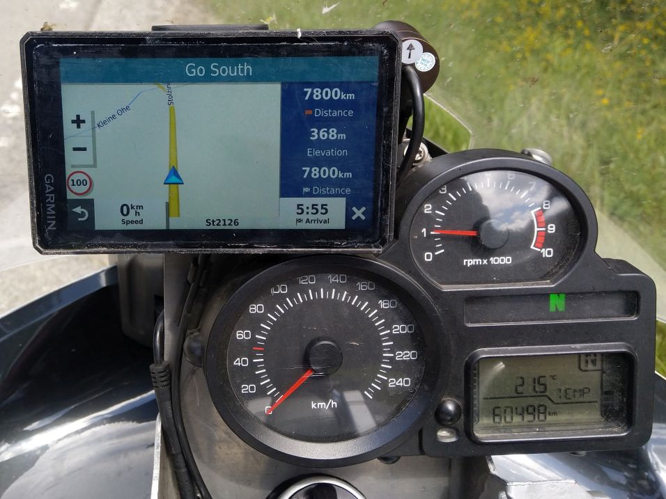 Před Passou v Německu provede Garmin jeden ze svých žertů, bez zjevné příčiny začne navigovat "Go South" se 7800 km do cíle,