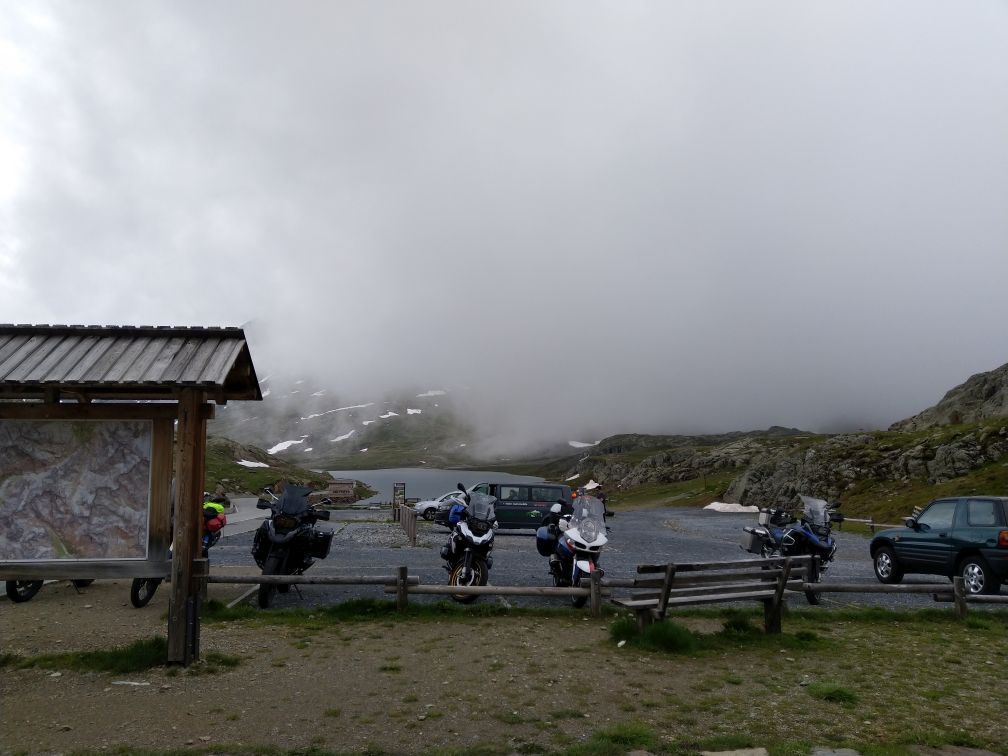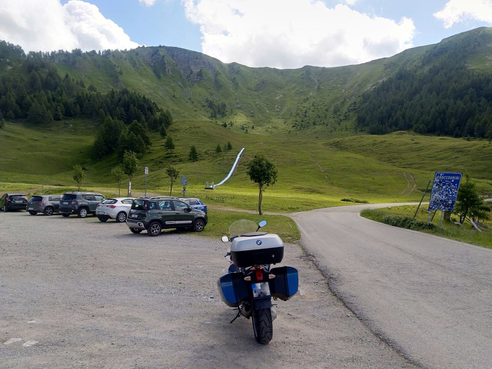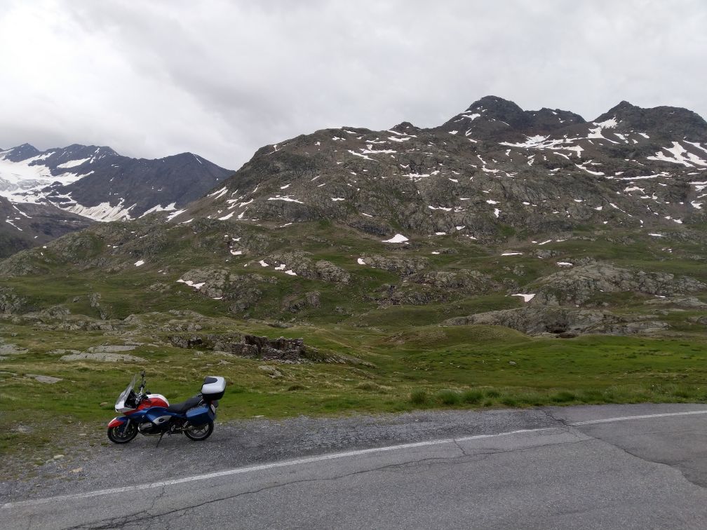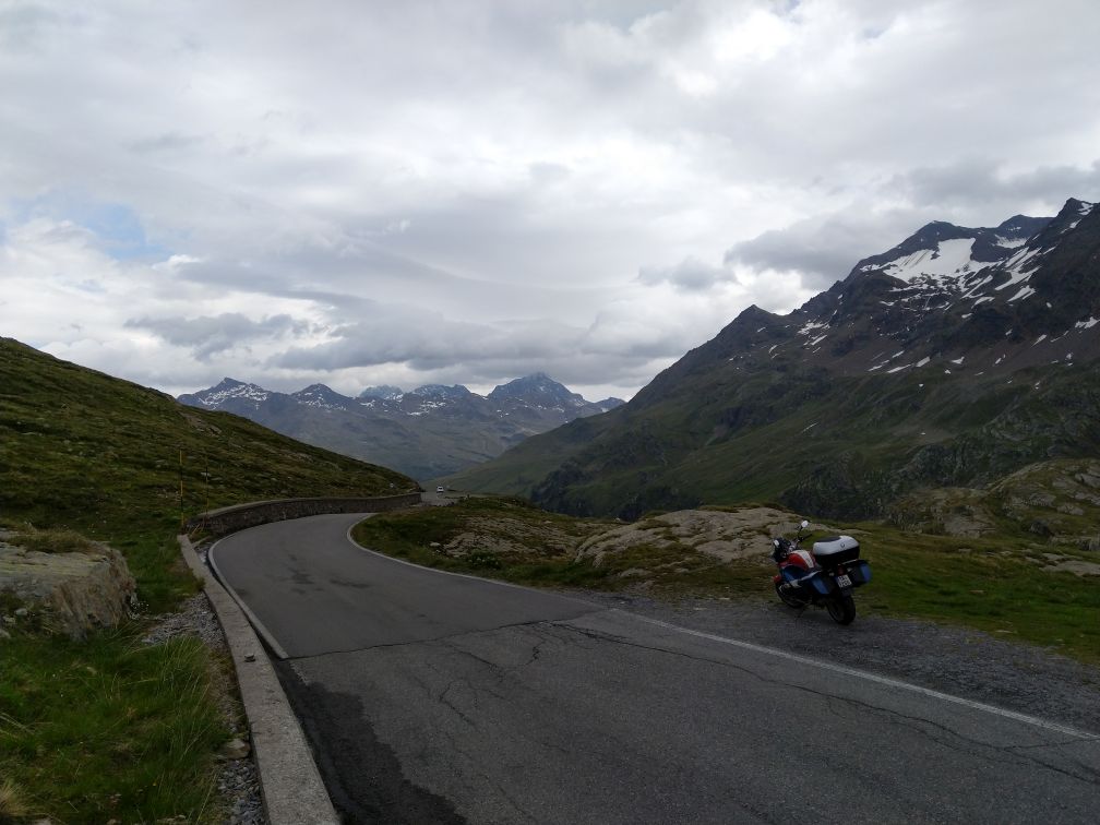 Stejným pasem zpět + jeho druhou půlkou do Saint Moritz a ač bychom rádi na pasy Julier nebo Albula, počasí nás vyhání k jihu přes Maloya pass směrem na Chiavennu, zpět do Itálie.