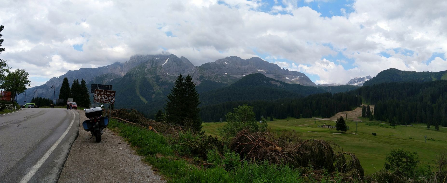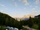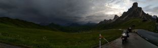 Počasí se lepší, na passo Giau je, až na chladných 8°C nádherně a před dalším Mordorem stíhám za sucha nafotit panorama Cortiny d'Ampezzo z bývalé horní stanice lanovky,
