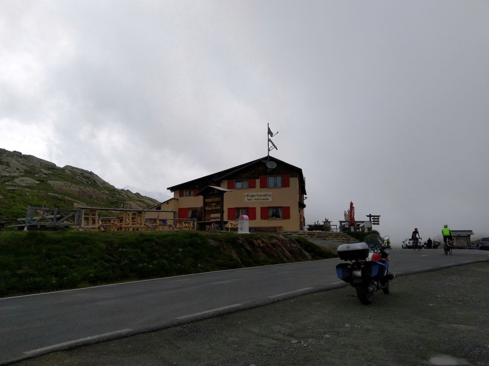 No co, úzké a strmé úseky mi až tak nevadí, Garmin sice hlásí cosi o nezpevněné cestě, ale vzhůru k pasu. Na italské straně je až nahoru asfalt, ovšem na francouzské straně možná kdysi byl a dnes je takřka až k tunelu šotolina.