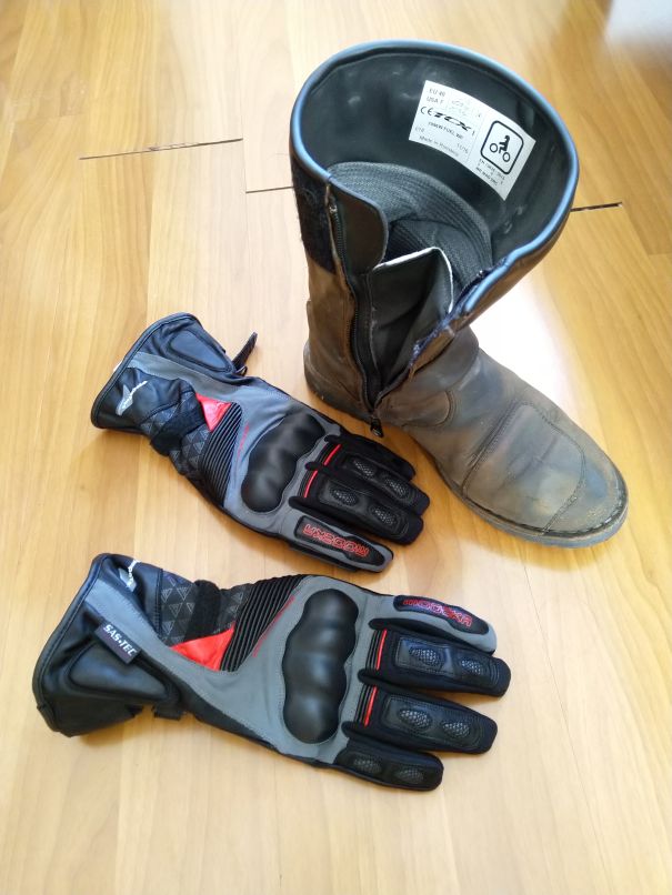 Rukavice večer vylité a vyždímané, jsou stále ještě nasáklé vodou. Naštěstí venku je azzuro a mám druhé letní, promočené poutám gumicukem k zadní sedačce a do večera vyschnou.