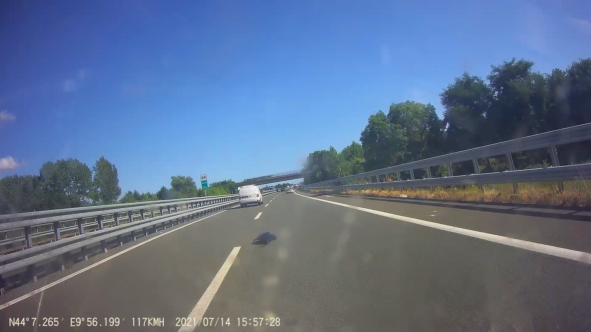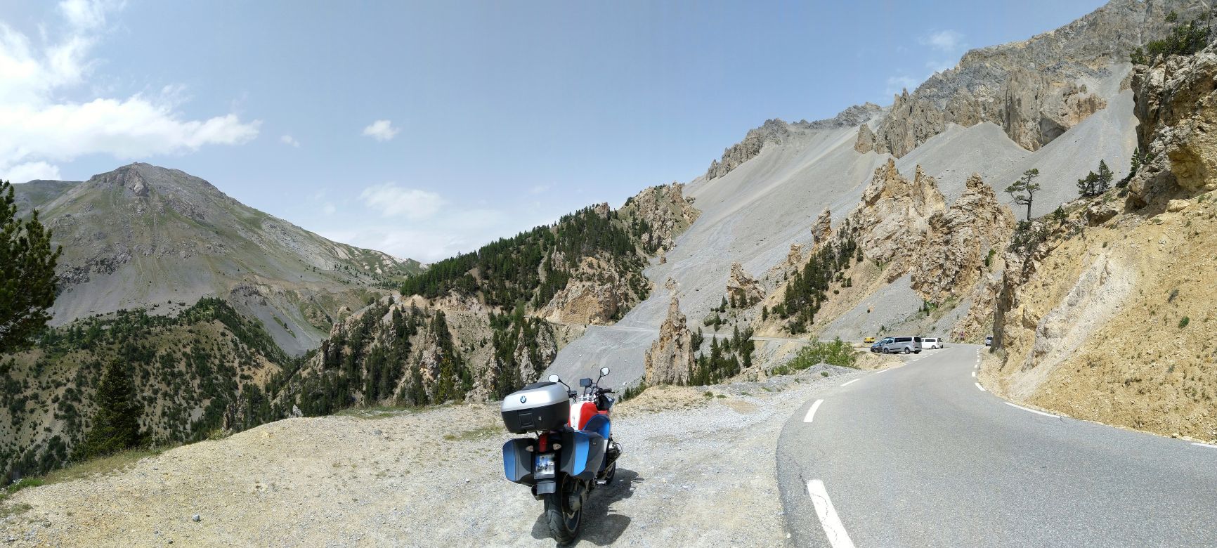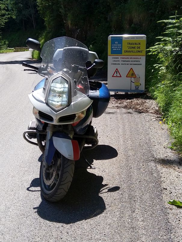 Cesta to byla záživná, pomalá a podle místy chybějící silnice pod tunelem, stržených mostů a jiných devastací tudy musela protéct značně destruktivní povodeň. Až to opraví, bude to z francouzské strany dobré silniční poježdění.