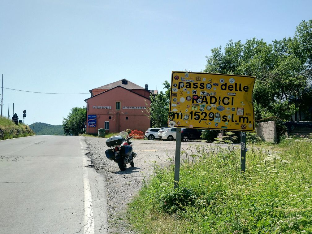 Z Pisy po rovině mi zpestří jízdu horský hřeben a passo delle Radici, po sjezdu je další nudná nížina od Modeny až k lago di Garda.