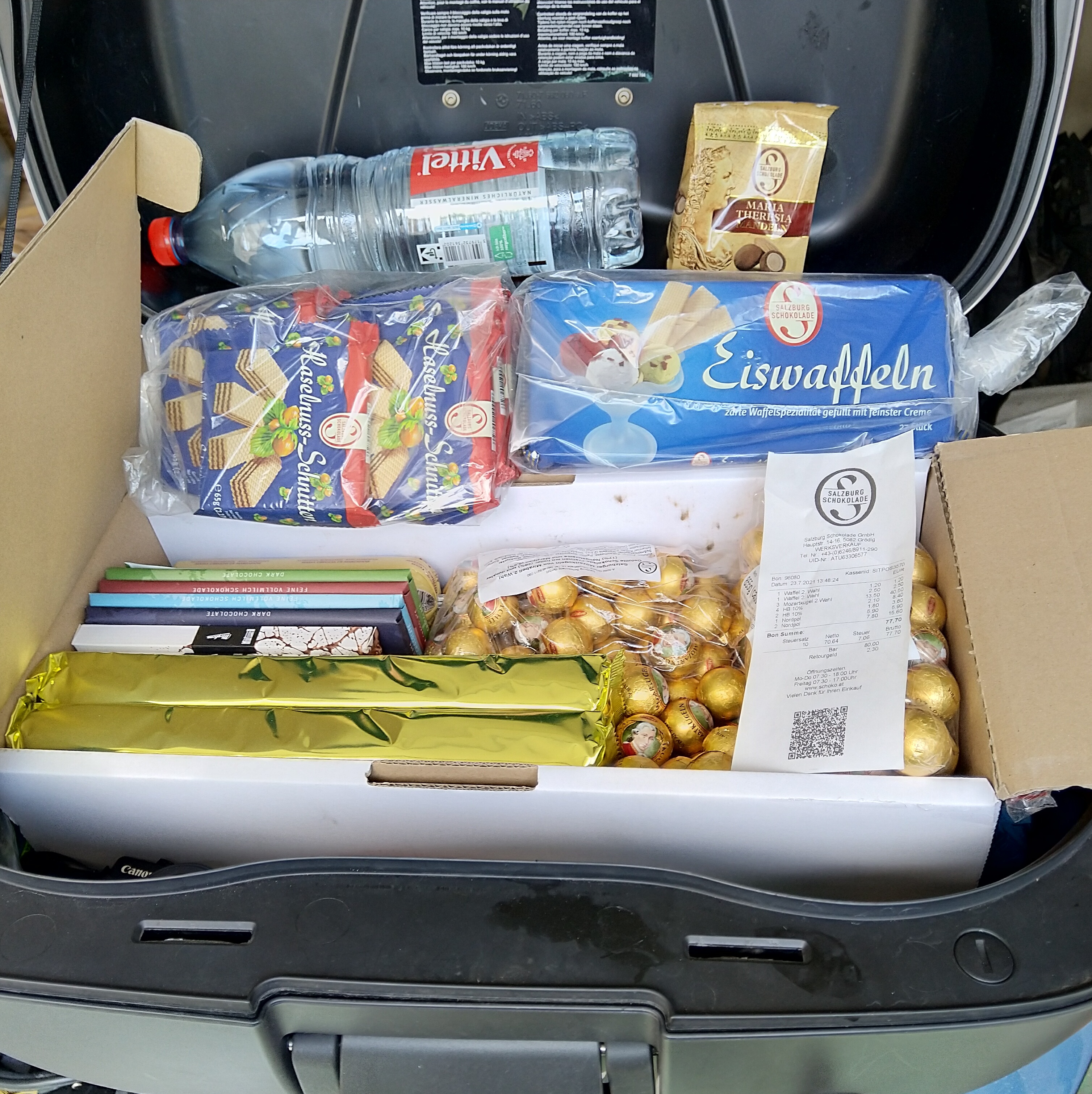 Cesta kolem Salzburgu v pracovní den by nebyla úplná bez nákupu v podnikové prodejně Salzburg Schokolade,