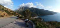 Vymotám se z města, jedu kus podle pobřeží do vesnice kde bydlím a než odbočím do hor, na hodinku se zastavím na pláži.