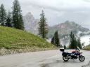 Jedu v mezeře mezi dvěma dešťovými mraky, na passo Duran stíhám tak tak před prudším deštěm než byl ten přečkaný na Šeredě.