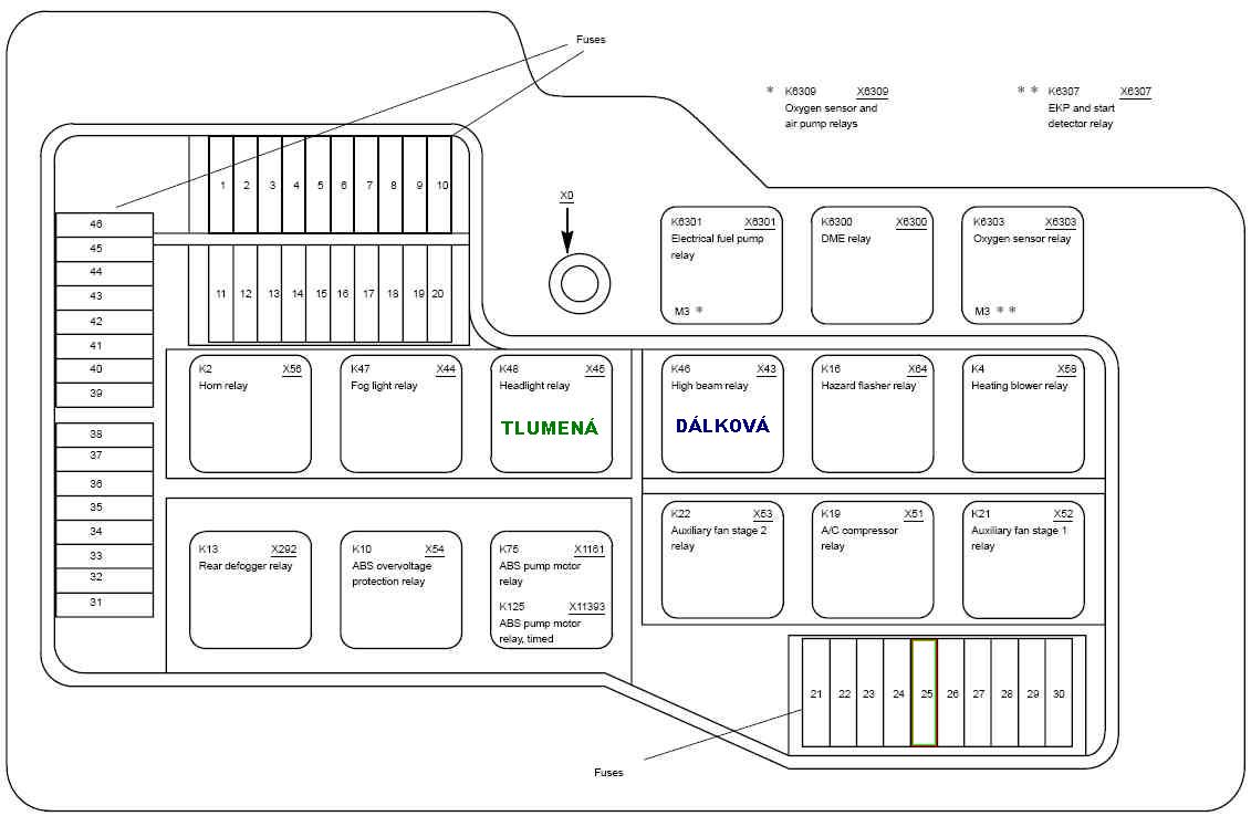 Relé dálkových světel se u ECE verze nachází v pojistkové skříni vedle posilovače brzd