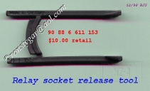 Bude třeba povolit čtyři šrouby a odklopit horní díl pojistkové skříně, odjistit a vysunout směrem dolů patici relé tlumených a dálkových světel a vyjmout z nich držáky relé, a to buď šroubovákem a nebo pomocí speciálního nástroje. Dále bude třeba odjistit a vysounout směrem dolů blok s pojistkami 21 až 30.