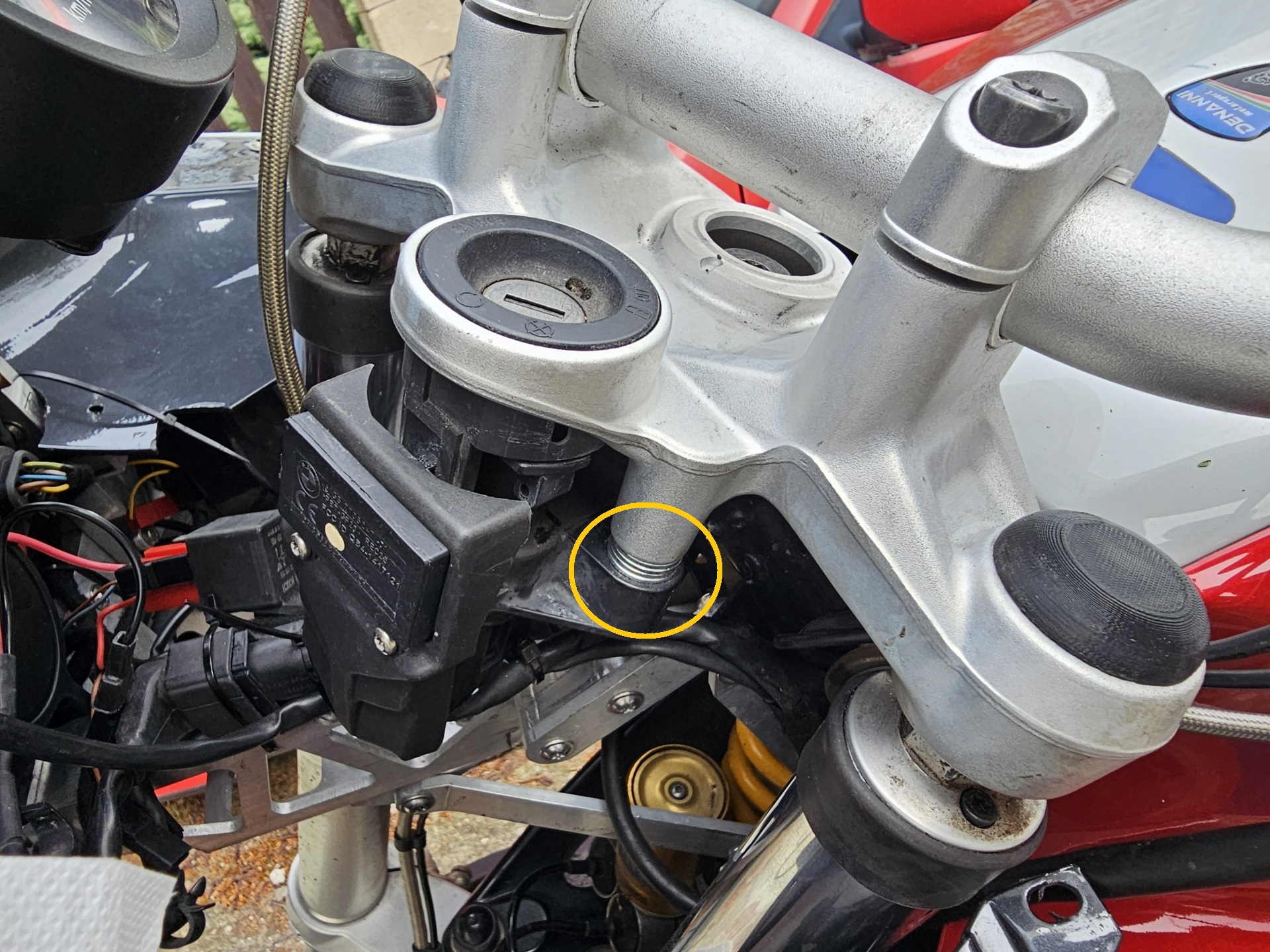 6) brýle z LC namontovat na motorku, mezi brýle a zámek řízení naskládat 5 ks podložek pro M8 šroub