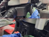 3) ohřát původní brýle a zlehka vylisovat původní ložisko i s čepem, který je u vzducháče delší než u LC