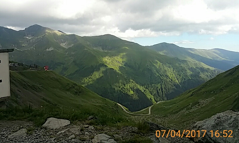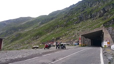 poté k čerpačce Lukoil před obcí Cârţişoara, dotankovat, získat další z důkazů pro IronButt, za obcí vyrobit památeční foto Fagaraše s motorkou a vzhůru na Transfagarasan.