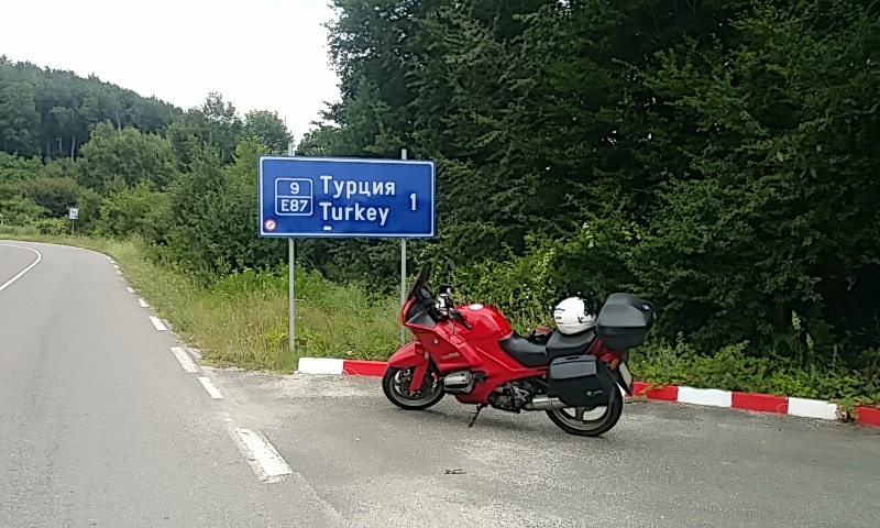 Před hranicí s Tureckem se potkáváme na čerpačce, já fotím ceduli "Турция 1" pro zveřejnění na chlubítku (tak jeden kamarád nazývá xichtoknihu alias facebook :-))