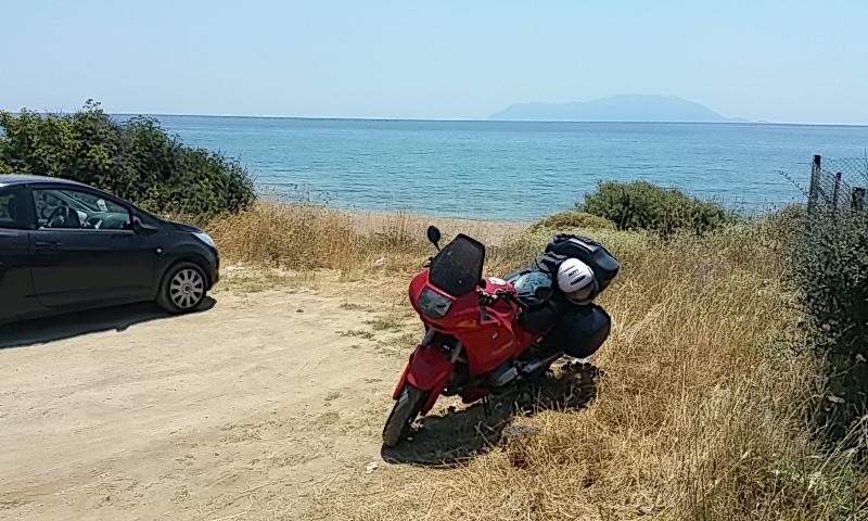 Říkám si "já to dám", otáčím zpět k moři a za nedlouho se ocitám u přechodu do Bulharska. Dojedou mě dvě české motorky se dvěma páry.