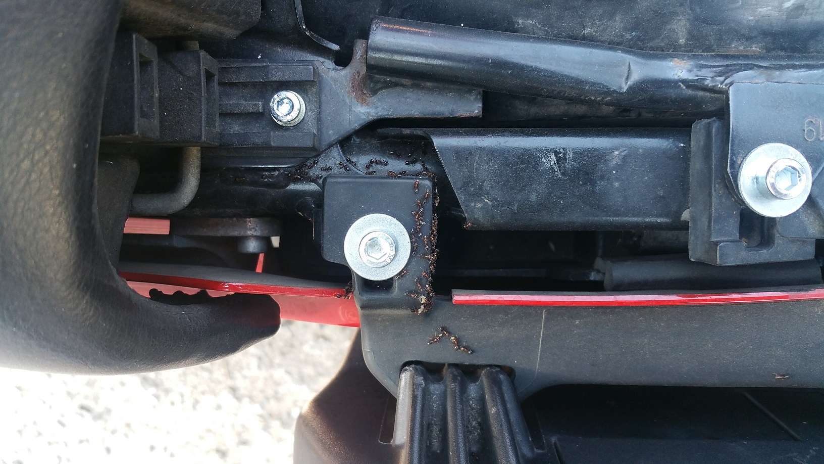 Zjišťuji druhý technický problém, rozpraskaný rámeček navigace a takřka vypadlý blok s napájecími kontakty,