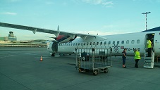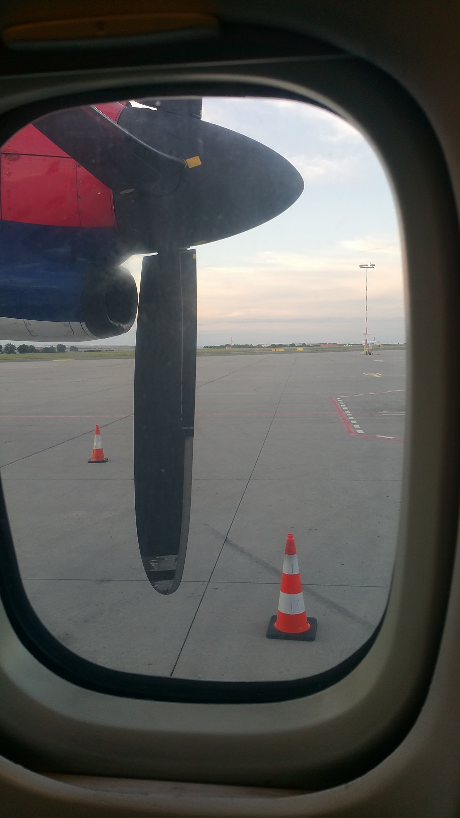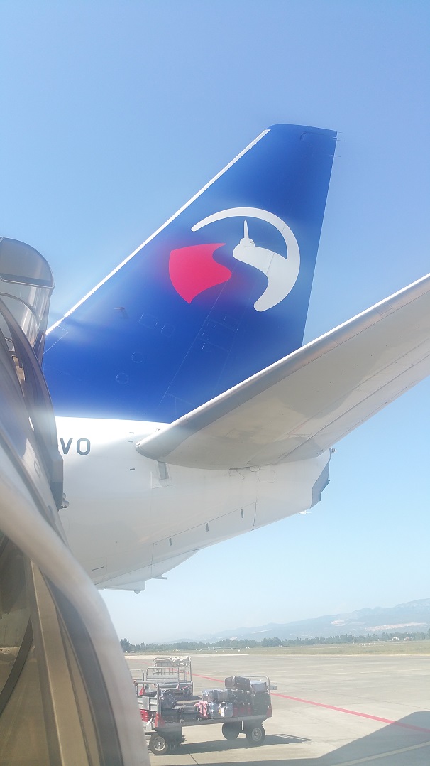 Let hlučným vibrujícím ATR72 společnosti Air Serbia ubíhá pomaleji než Boeingem, oproti včerejším levnému charteru dostáváme zdarma malý sendvič a nápoj podle výběru.