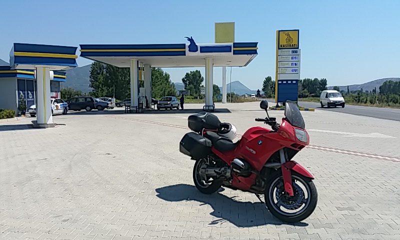Další turecké překvapení u čerpačky, pouze s obsluhou a pouze po zadání RZ motorky obsluhou do terminálu na sloupu. Stejně tak u všech dalších.
