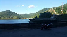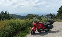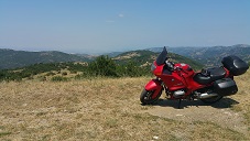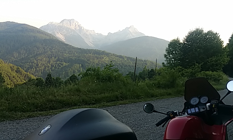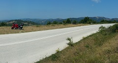 Trasa perfektní, kombinace vlásenek a rychlejších zatáček, desítky kilometrů motorkářského ráje bez provozu. V údolí míjím odpočívající skupinku čtyř maďarských párů na motorkách,