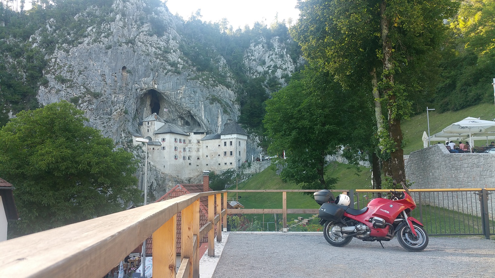 Sakryš. Ještě že motorka se vejde, i když chorvatští řidiči pro ni nechávají velmi málo místa. Od moře do hor, do Slovinska, do krasu, k Predjamskemu Gradu.