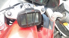 Při vkládání čínské navigace Excelvan do rámečku na řídítkách zjišťuji ulomený levý spodní roh, jednotka navigace drží v pravém spodním rohu a horním zácvaku a má šroubovací pojistku,