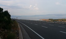 příjemně zřídne provoz a je možno užít si zatáček na útesech a výhledů na moře, jízda je celkem svižná. Bookovaný nocleh kousek za Splitem,