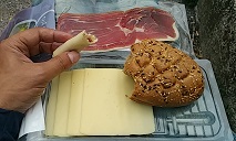 Ve Sparu v Jadranovu utrácím včera obdržené kuní xichty za jídlo a pití, dělám si piknik na odpočívadle u silnice jako správný český turista v Chorvatsku.