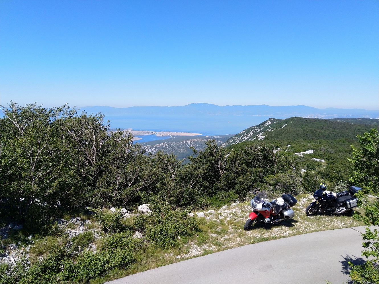 V Karlobagu znovu najíždíme na Jadranskou magistrálu, dojíždíme dva Švýcary na BMW GS pouštějící nás před sebe