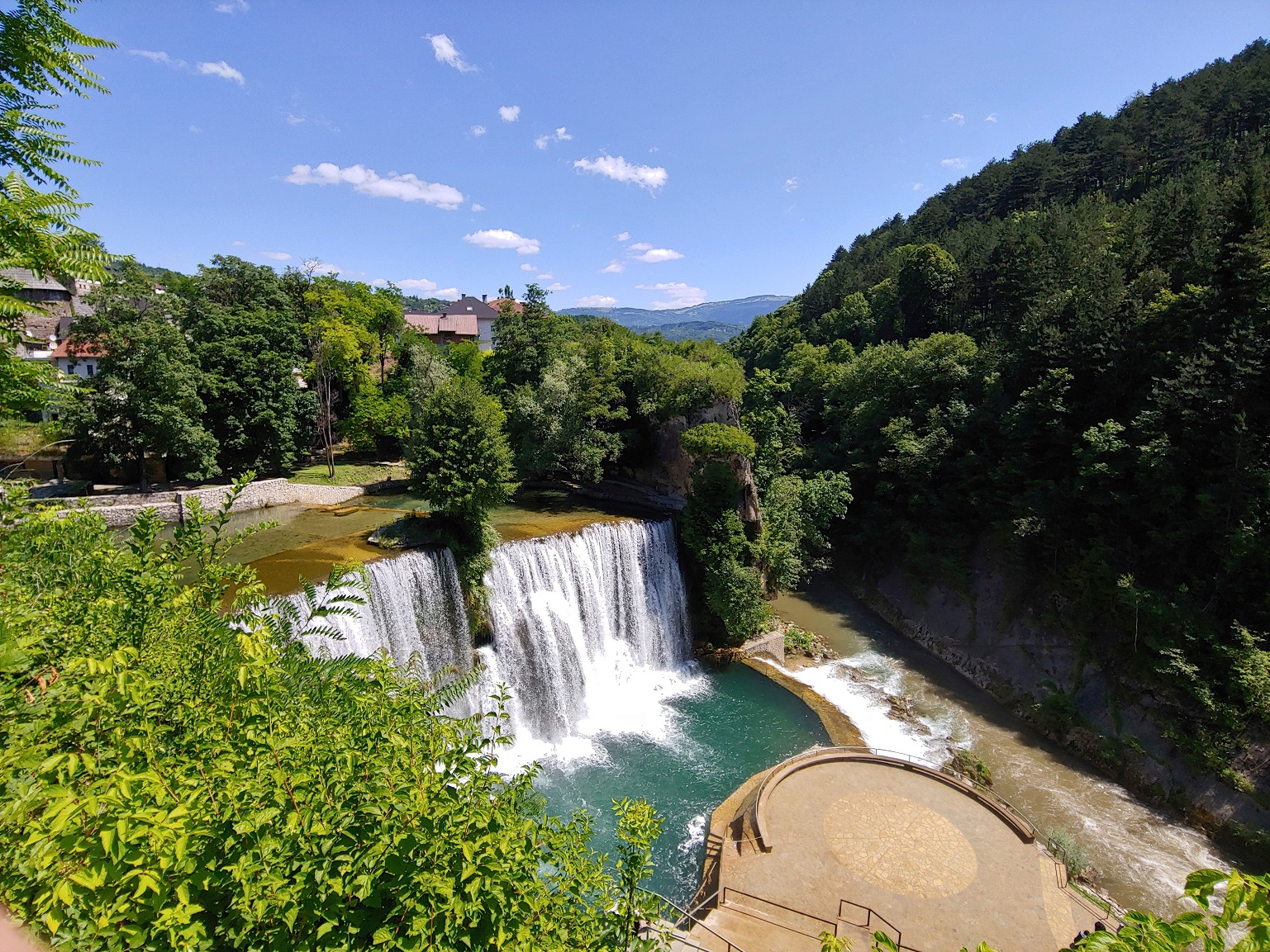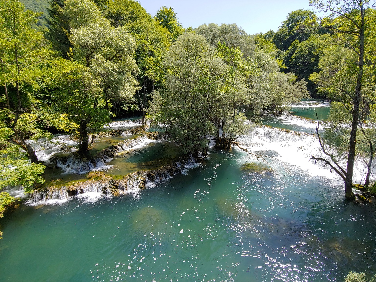Martin Brod je úžasné místo, vodopády jsou v obci mezi domy. Vracíme se stejnou cestou do Bosansko Grahova, kolem Buško jezera na jihovýchod až na parkoviště k vodopádům Kravica.