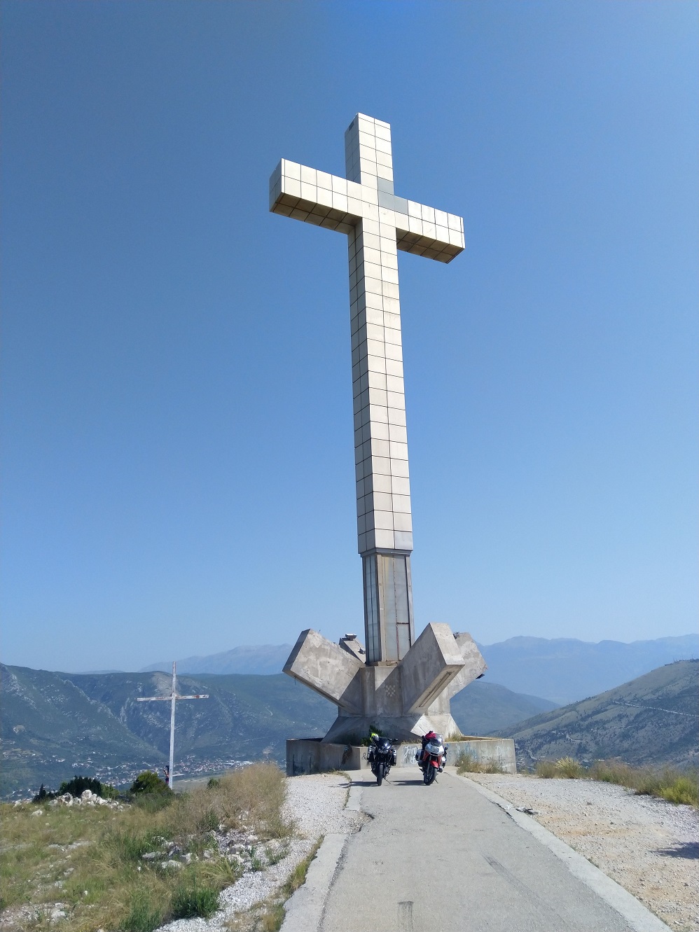Ráno po snídani, od tohoto dne všechny noclehy už budou se snídaní, vyjedeme na vrch Hum nad Mostar, k památníku Milenijski križ, s výhledem na část města.