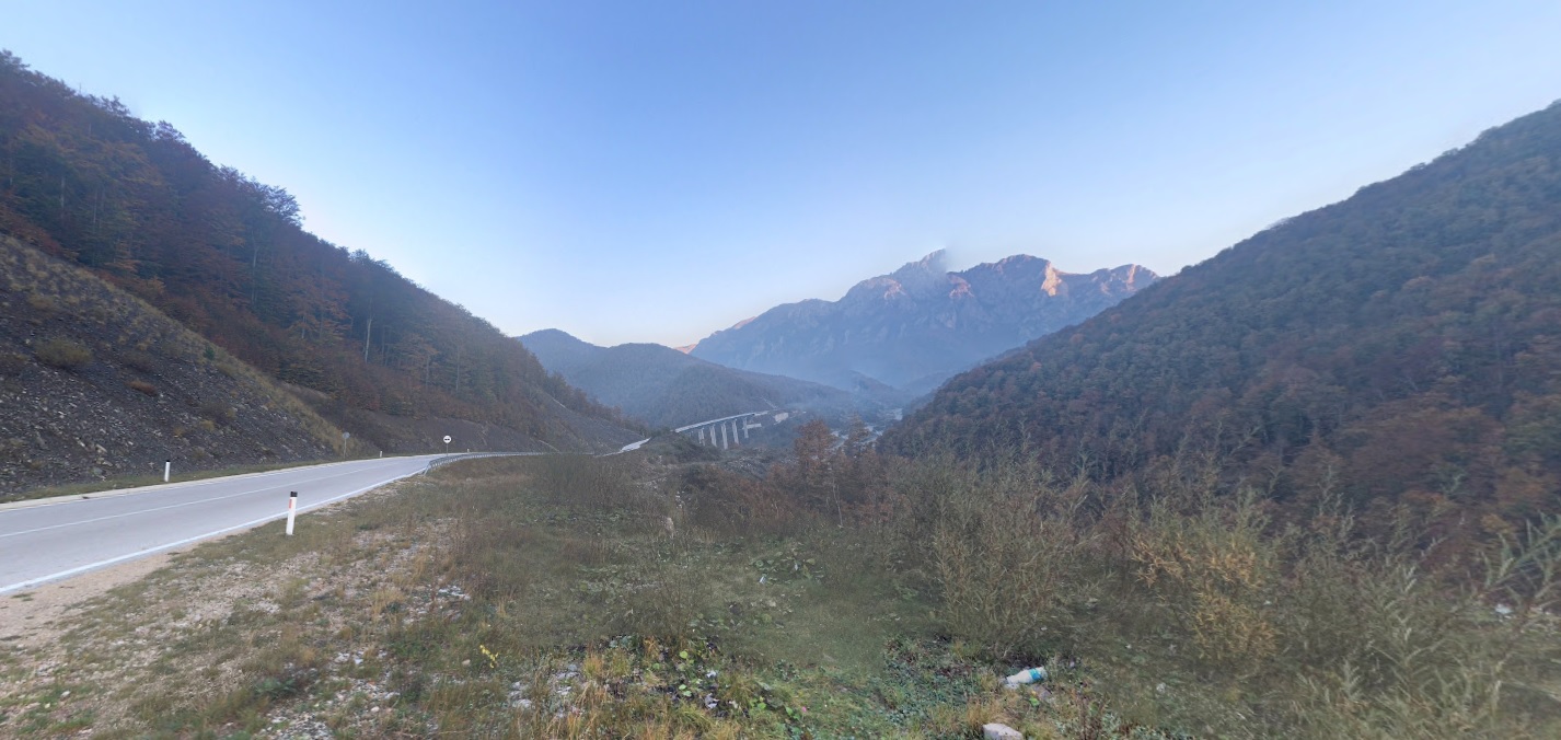 na kaňon řeky Cijevna (Cem) a albánskou silnici SH20.