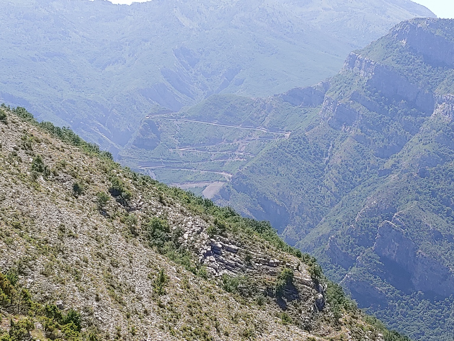 Dál se silnice podobá albánskému horskému venkovu, ba jej někdy i překonává, po návratu na silnici 20 děláme krátkou odbočku k vyhlídce na kaňon Vikos, který je prý místy hluboký až 1000 metrů.