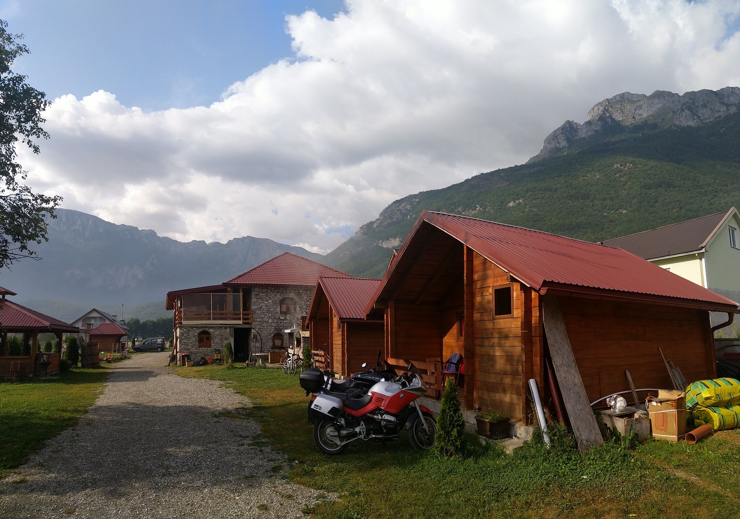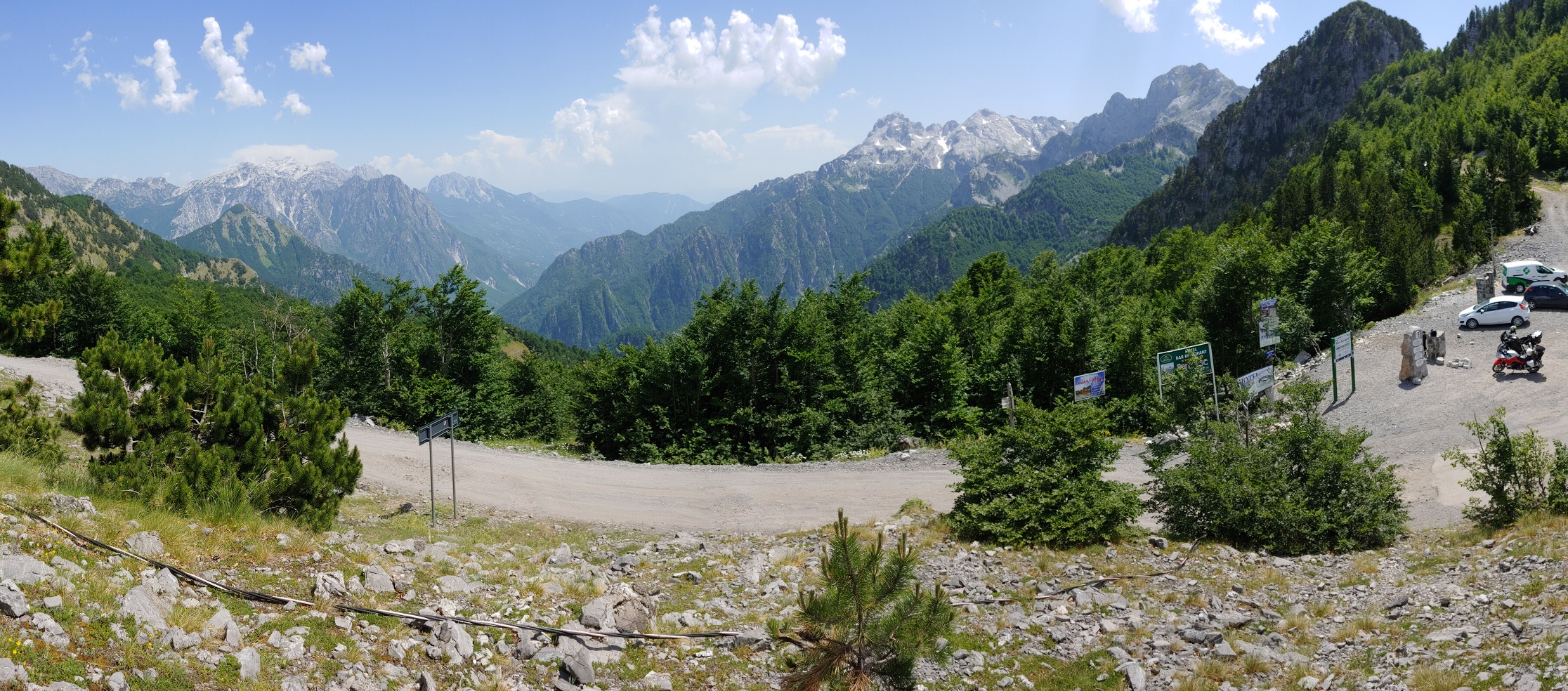 Pro překročení hranice do Albánie vyšplháme na konec asfaltu v parku Theth, kousek po šotolině až k restauraci Buni i bajraktarit.