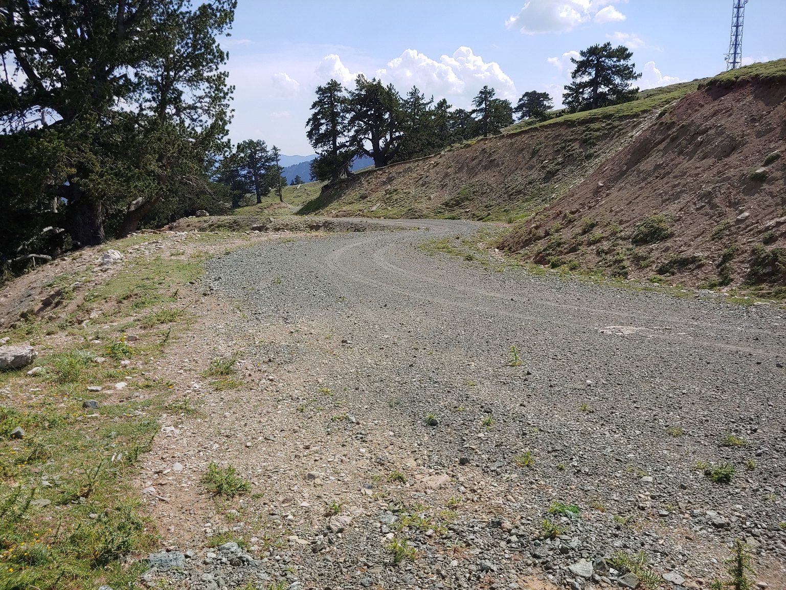 Z průsmyku je vidět vysílač na kótě 1850, podle offline appky mapy.cz k němu vede šotolinová cesta a tak zkoušíme, jak daleko to půjde. Daleko.