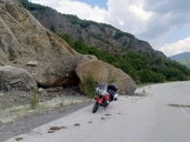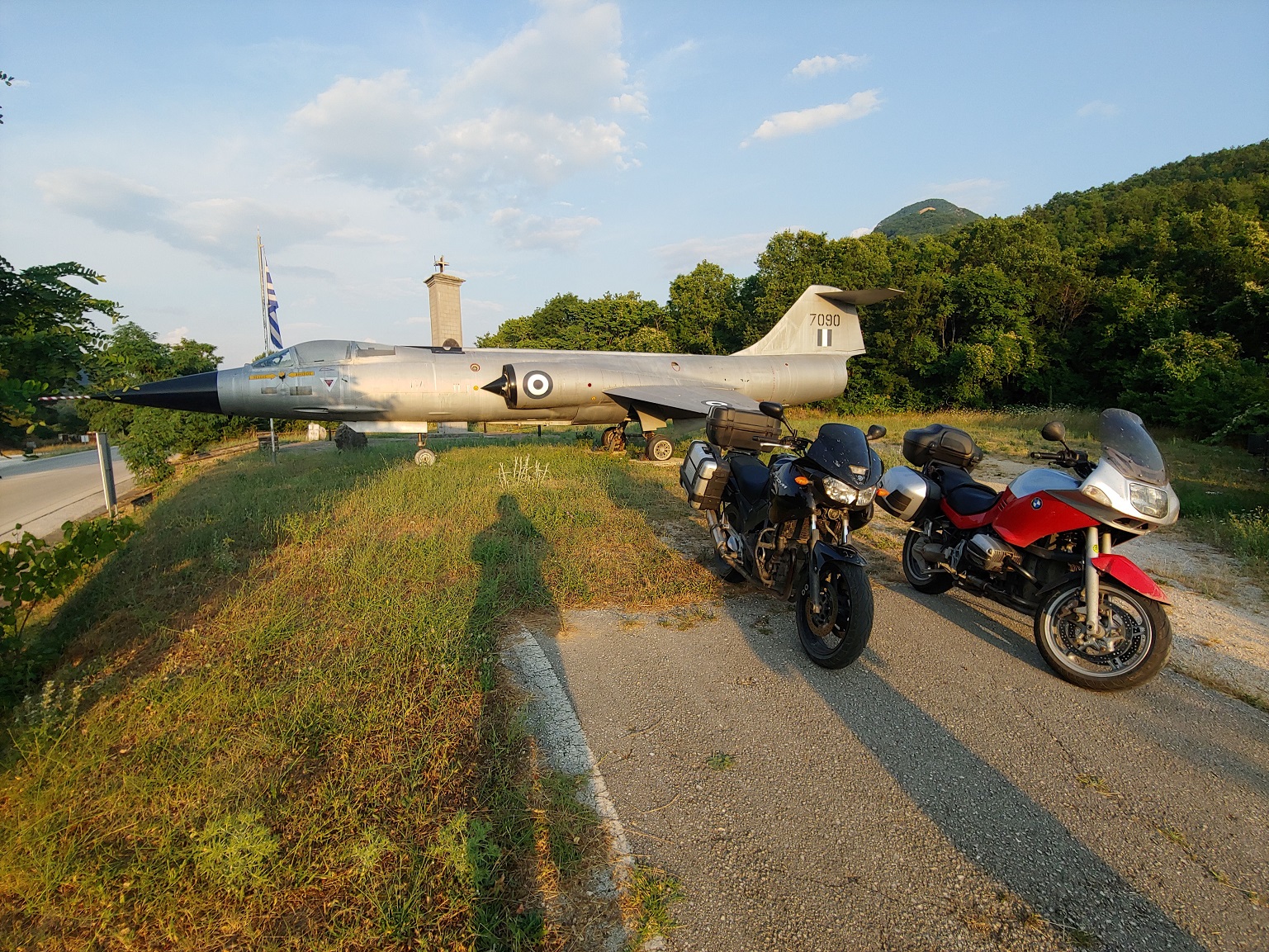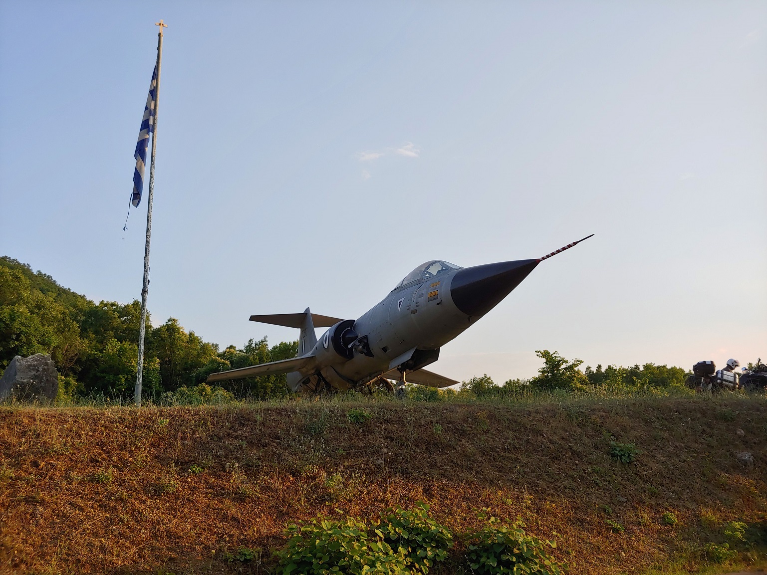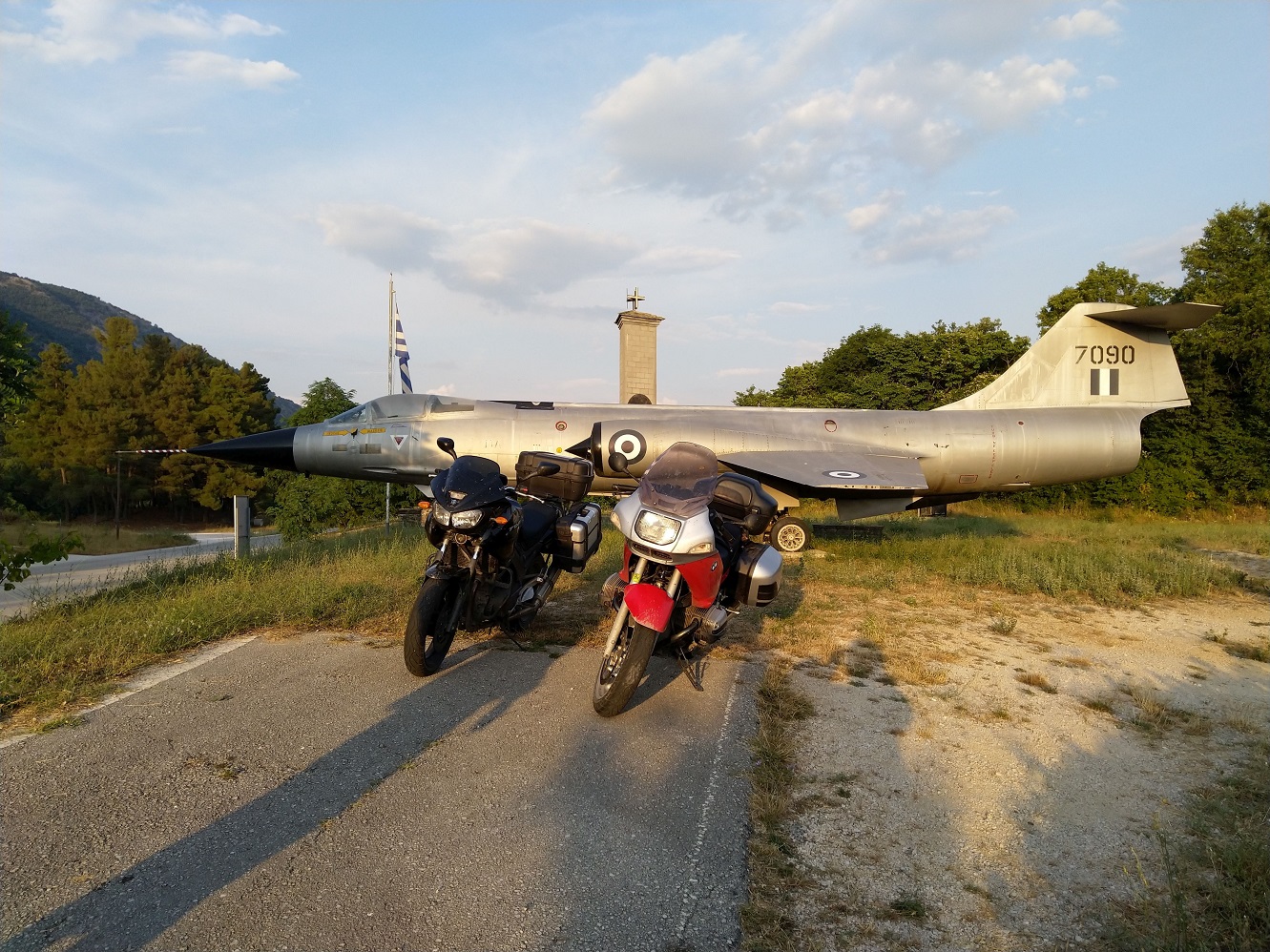 Čas kvapí, cvakneme několik fotek a stáčíme zpět na dvacítku, a pak na E853 směr Kakavia a Albánie. Nezapomene zastavit a fotit před odbočkou na Delvinaki, u památníku s F-104G Starfighter.