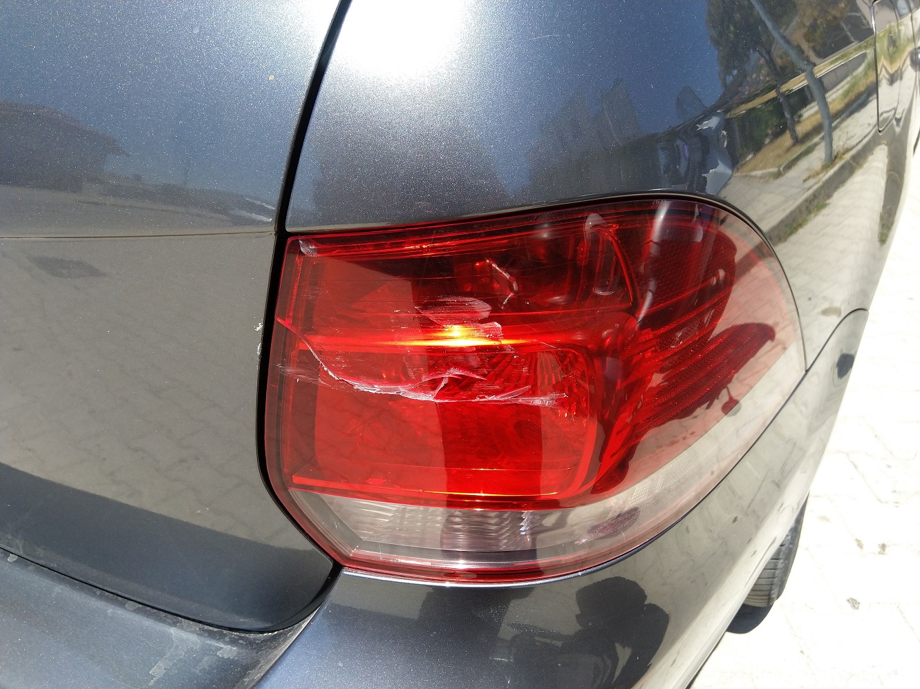 Výsledkem je šmouha na jeho nárazníku a prasklinu na pravém koncovém světle, u mě jen vyskočené plasty z příchytek.