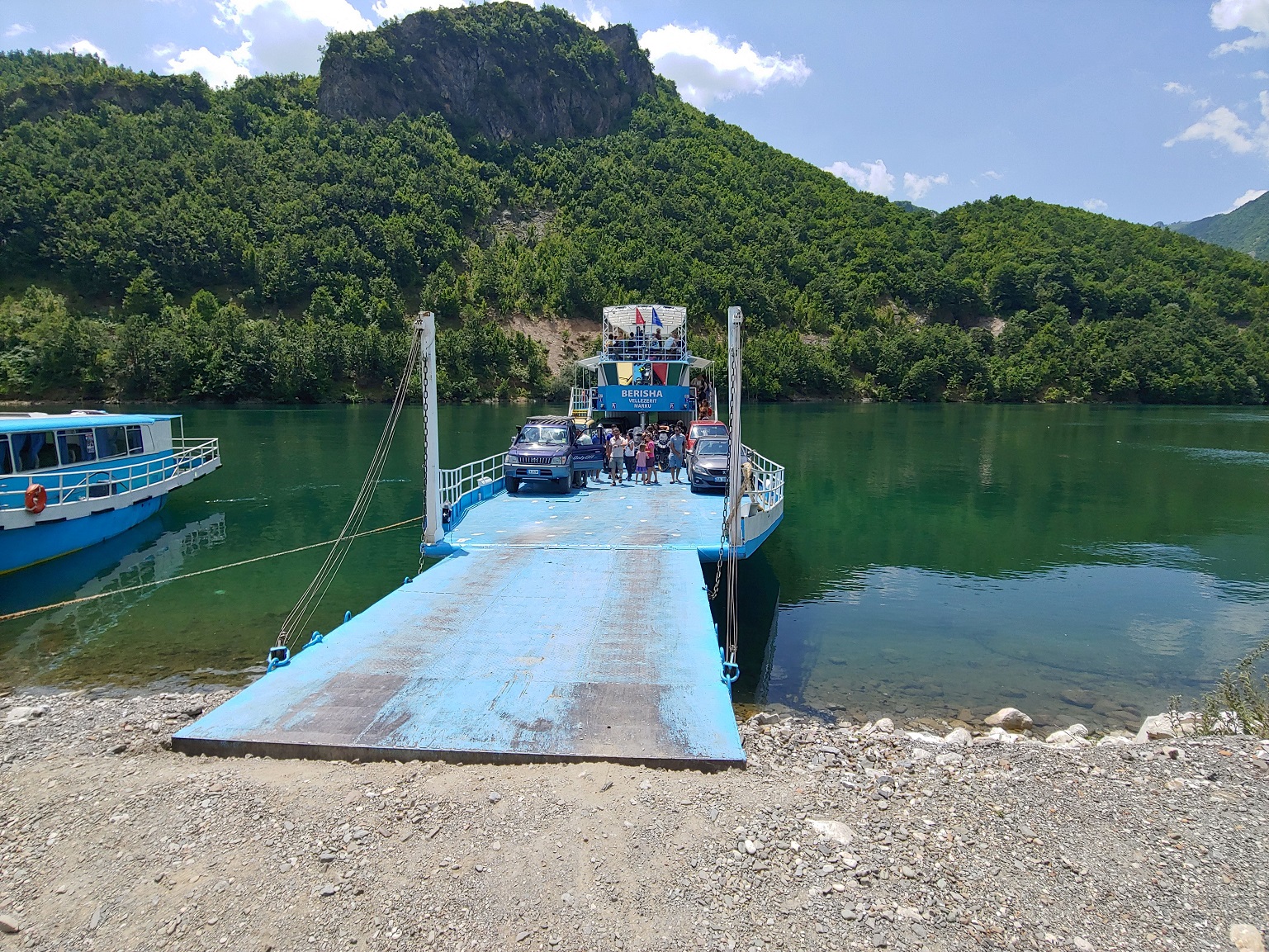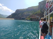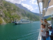 Postupně je zaplněn skoro celý trajekt a kupodivu vyplouváme nealbánsky včas, stejně jako jsme včas v Komanu. SH25 z Komanu až k SH5 u Vau i Dejës je rozbitá jak je vidět na youtube videích.