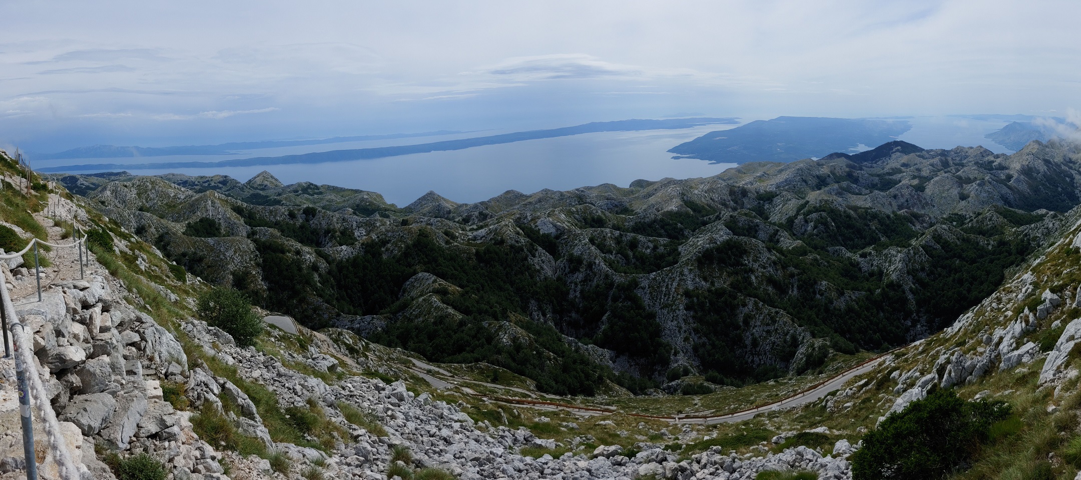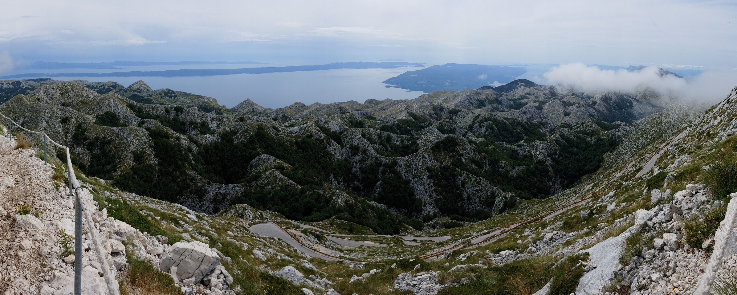Vyplatilo se, výhled z Biokova nějaký byl, chvílemi čistší a chvílemi s mraky. Na parkovišti pod vysílačem je dnes víc Čechů než jakékoli jiné národnosti.