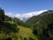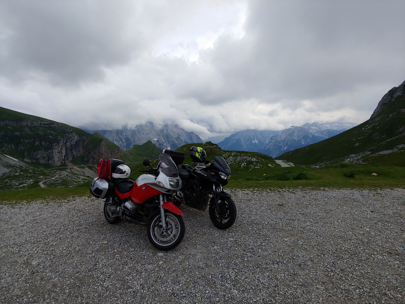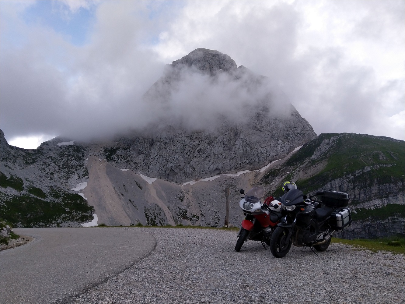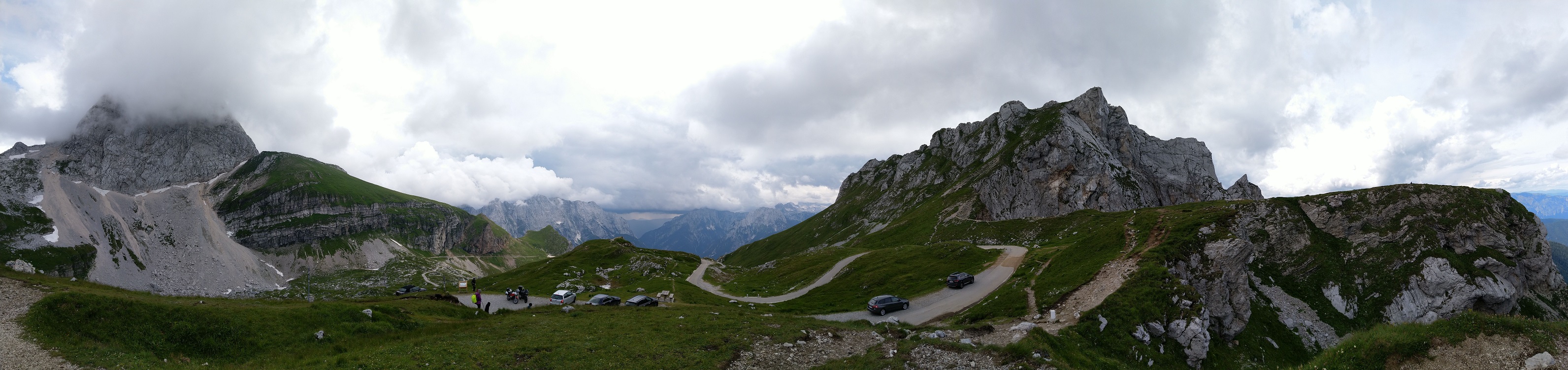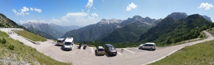 Přes Postojnu, přes plné parkoviště, přes Gorizii a údolím řeky Soča dorazíme pod Mangart a vystoupáme, po zaplacení vlezného, až na vrcholový okruh.