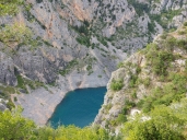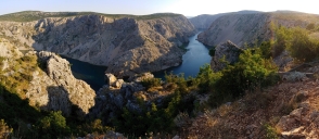 a záhy jim mizíme z dohledu. Krátkou odbočkou z D54, po první plánované šotolině celé cesty, zajedeme ke kaňonu řeky Zrmanja, k vyhlídkovému místu zvanému Vinnetou Pueblo.