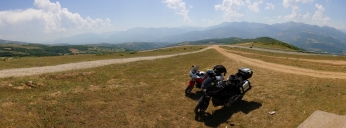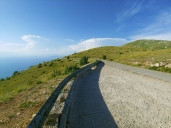 ale na příjezdové cestě je zamčená brána a výstraha se zákazem nevstupovat do vojenského prostoru. No nic. Užíváme si výjezd na Llogara pas a skvělé rozhledy, jsem tu přesně na den stejně jako vloni.