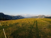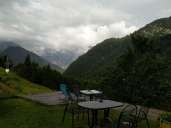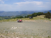 4,5 km střídavě po šotolině, asfaltu a betonu, některá stupání mají snad 20%. Jsme nahoře, 1345 metrů nad mořem, těsně vedle Monte Glazzat 1360 m.n.m., kam se dá pár kroky dojít pěšky.