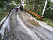 Sledujeme oblohu i srážkový radar, vyčíháme mezeru a vyrazíme do NP Biokovo. Pod vrcholem jsou cestě zbytky pevných srážek, spíš krup než sněhu. Sníh v Chorvatsku v červenci, to se jen tak nevidí.