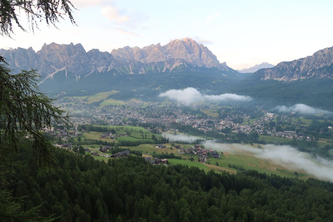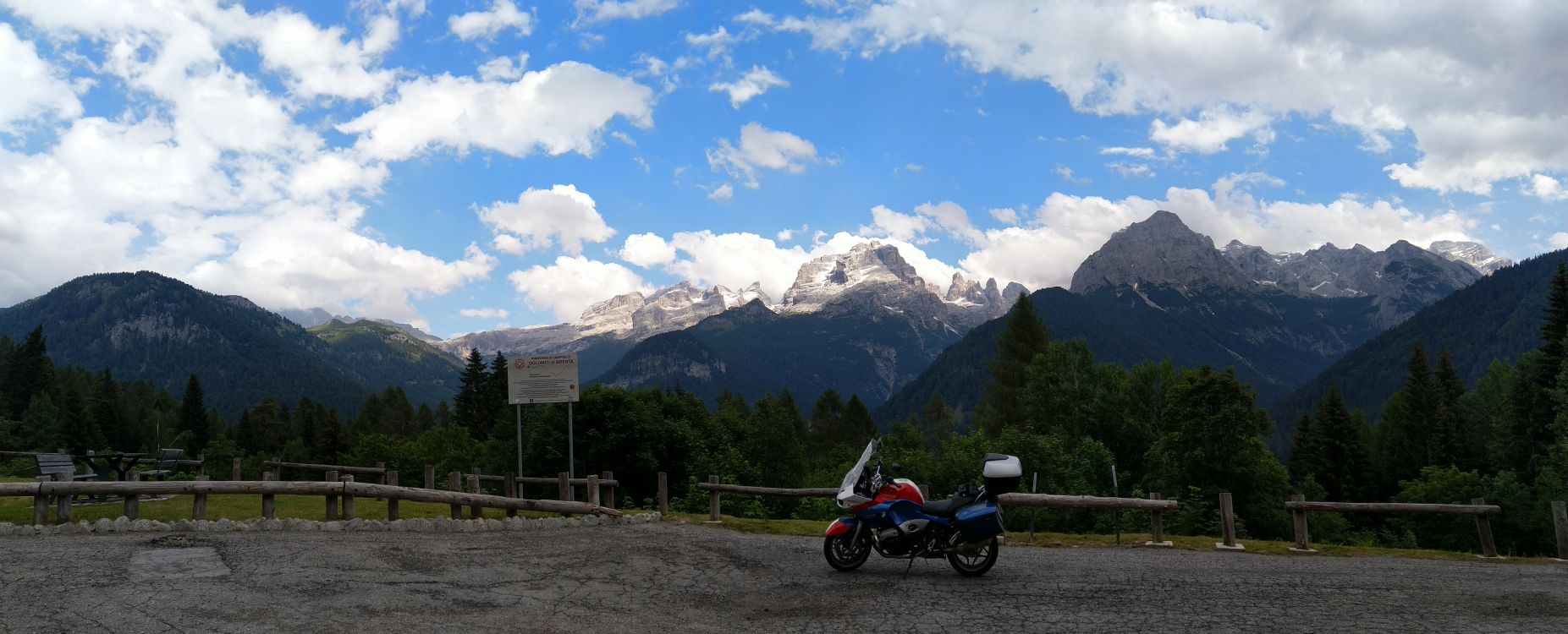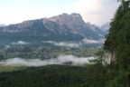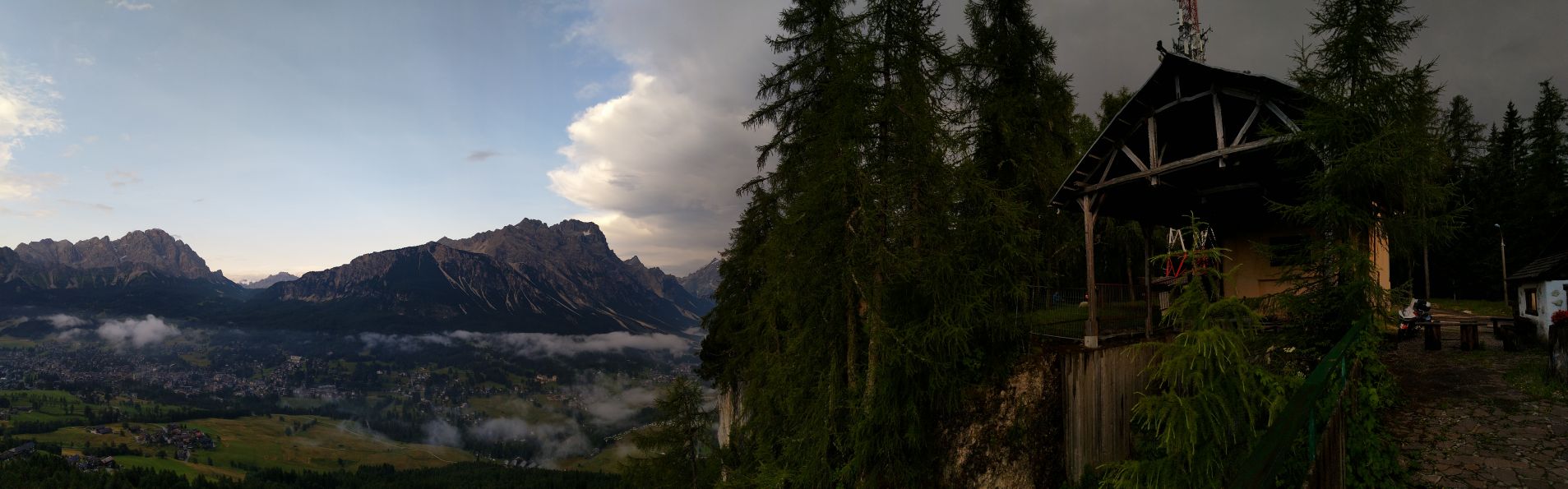 Počasí se lepší, na passo Giau je, až na chladných 8°C nádherně a před dalším Mordorem stíhám za sucha nafotit panorama Cortiny d'Ampezzo z bývalé horní stanice lanovky,