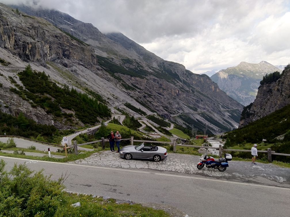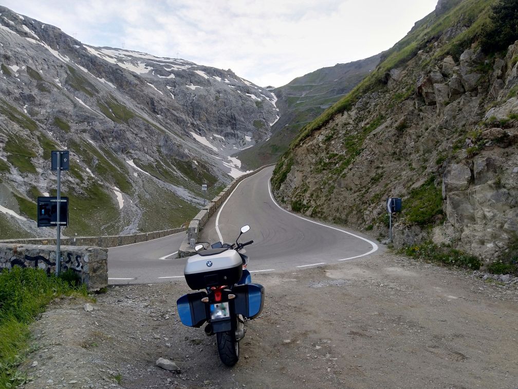 Projedu několik rakouských a italských pasů, včetně Stelvia - nahoru fotograficky oblíbenou ale řidičsky obtížnou trasou z Trafoi, se zatáčkami "kolem patníku" s vnitřním poloměrem sotva metr.