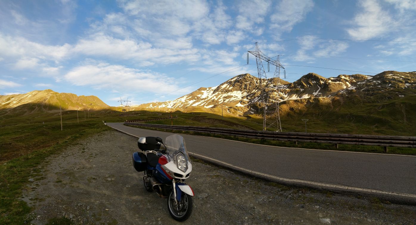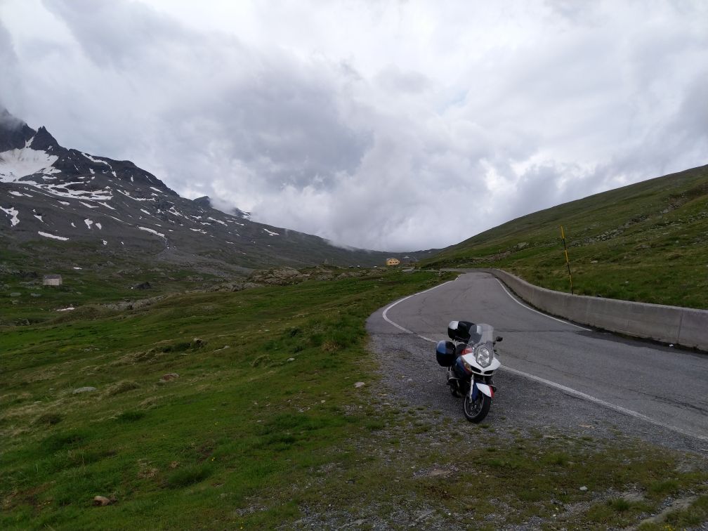 Stejným pasem zpět + jeho druhou půlkou do Saint Moritz a ač bychom rádi na pasy Julier nebo Albula, počasí nás vyhání k jihu přes Maloya pass směrem na Chiavennu, zpět do Itálie.