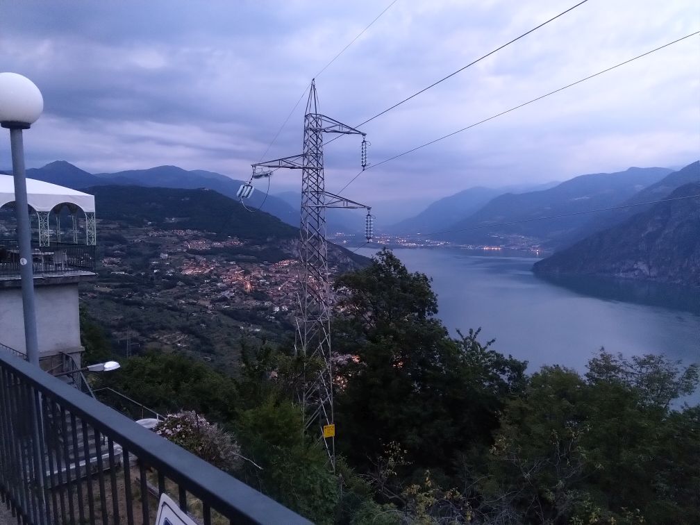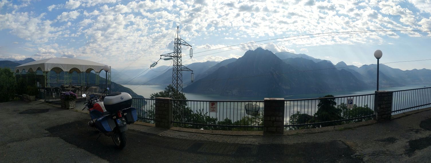 Už předchozí den si dopisuji s dalším kamarádem Martinem, zatímco dnes snídám s výhledem Lago d'Iseo, on je prý s partou na Stelviu. Prý večer spí ve městě Dimaro a tak nasměruju cestu tam.