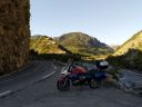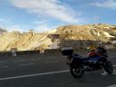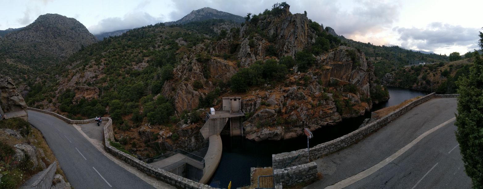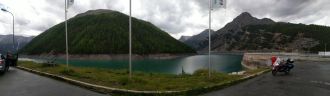 Cestou dolů z Maloya passu obdivujeme ve stráni před sebou přehradní hráz Lägh da I'Albigna (Albignasee) a ač bych rád foto motorky s touto stavbou, veřejná silnice tam nevede, v mapě je zakreslena jen lanovka.