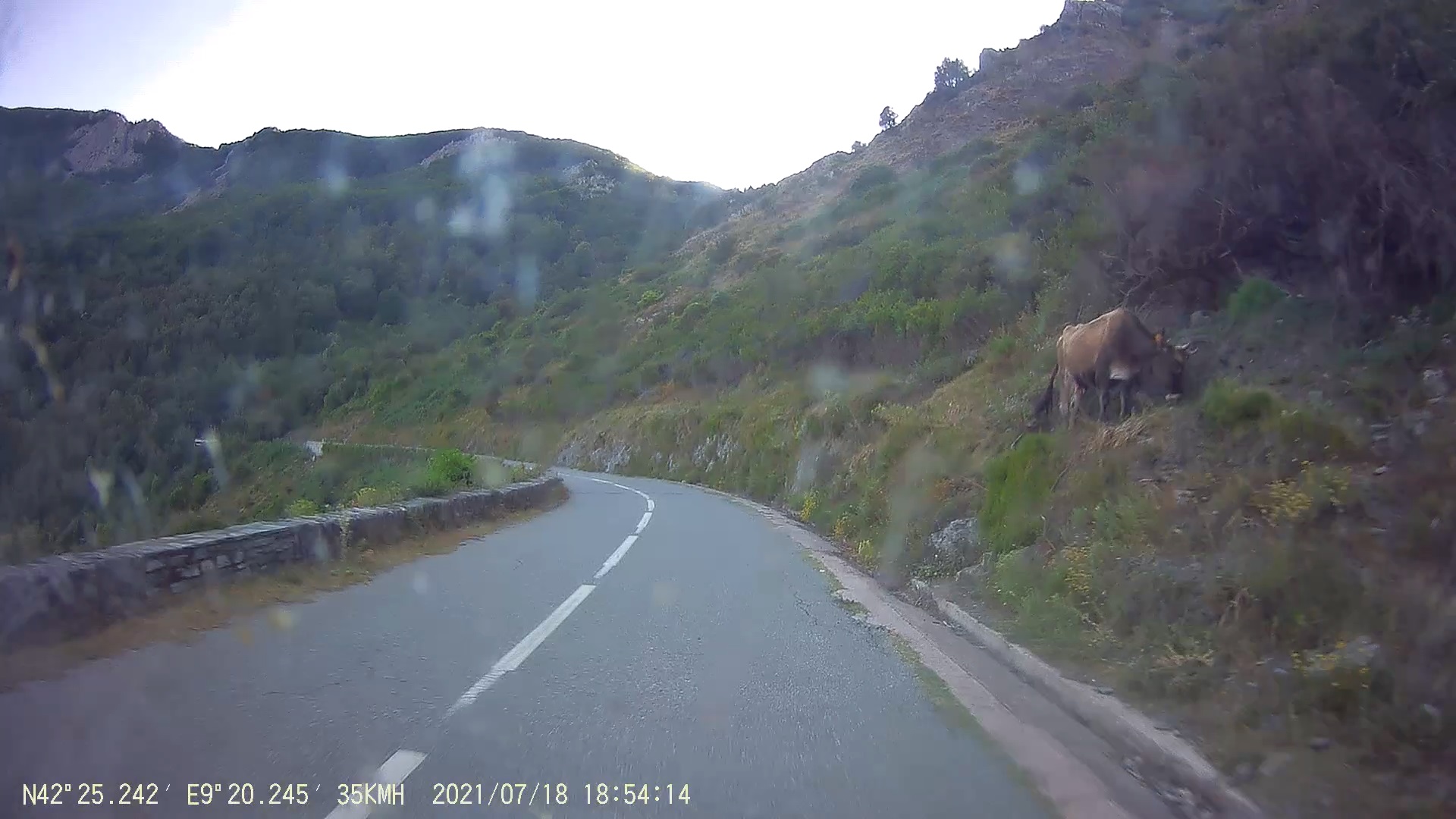 Cesta to byla záživná, pomalá a podle místy chybějící silnice pod tunelem, stržených mostů a jiných devastací tudy musela protéct značně destruktivní povodeň. Až to opraví, bude to z francouzské strany dobré silniční poježdění.
