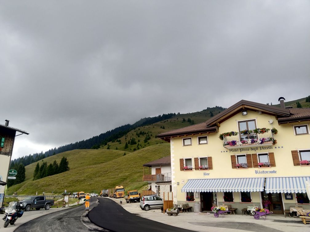 Jedu v mezeře mezi dvěma dešťovými mraky, na passo Duran stíhám tak tak před prudším deštěm než byl ten přečkaný na Šeredě.